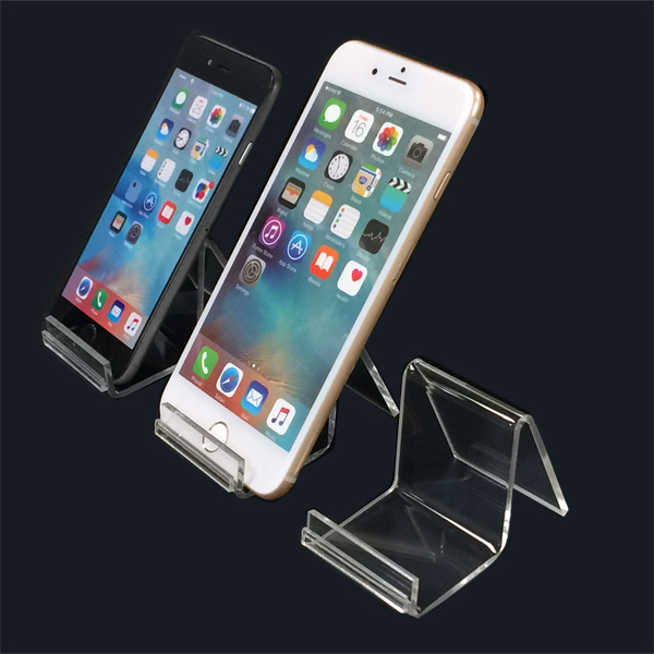スマホ、財布、デジカメ、小型ゲーム機など、厚みのない商品を展示販売するのに便利なアクリル製スタンド。プライスカードや商品説明POPを差し込めるポケット付です。