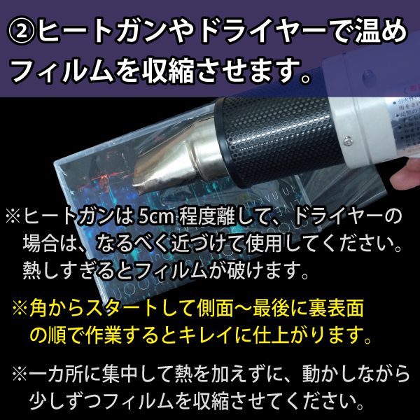 ※加熱し過ぎるとフィルムが裂ける事がございます。温度を調節しながら加工してください。